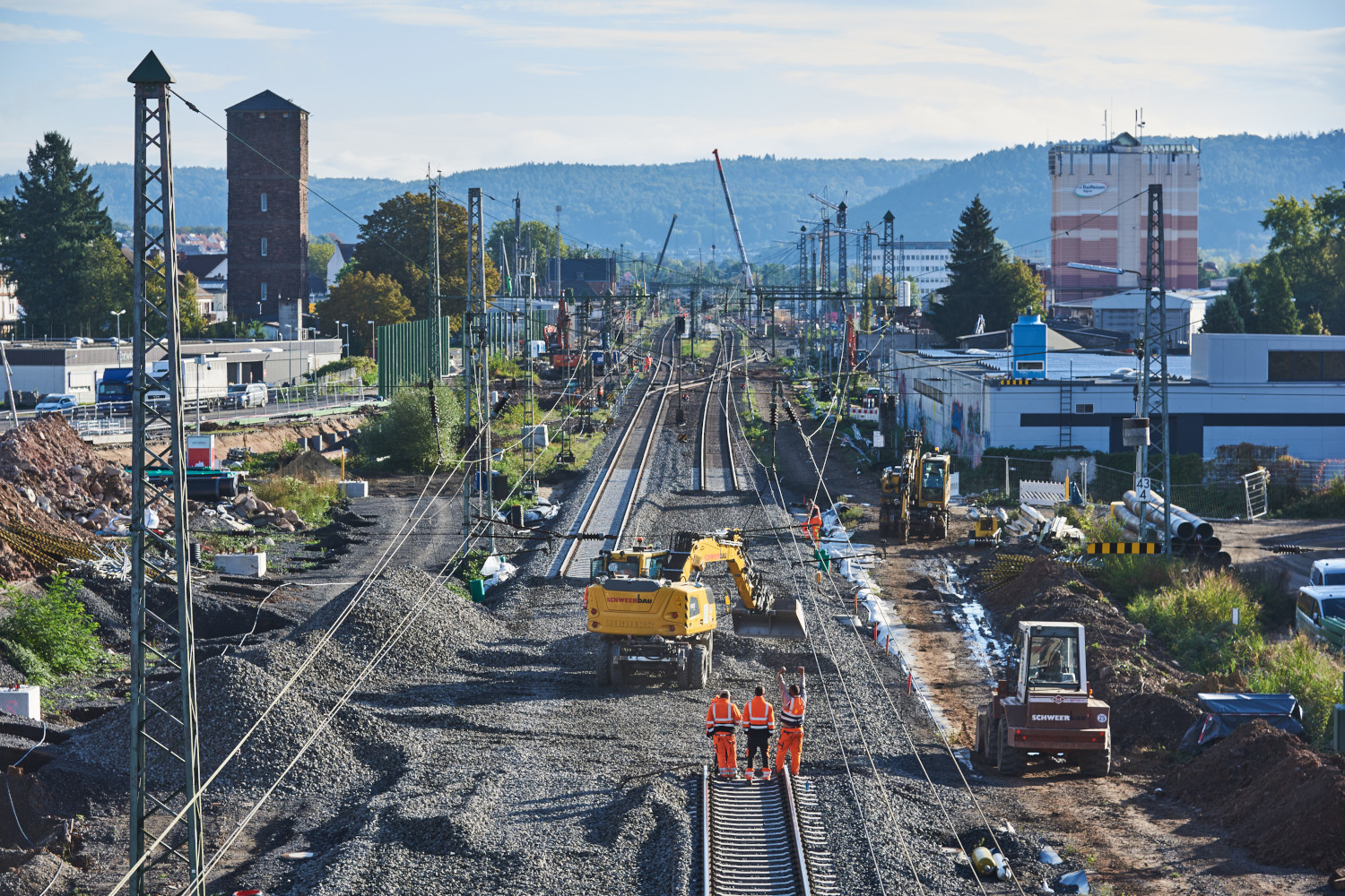 Im Rahmen einer Totalsperrung der Zugstrecke fanden von Freitag, 4. Oktober bis Montagfrüh, 7. Oktober 2024 umfangreiche Bauarbeiten entlang der Strecke 3600 hauptsächlich im Bereich der Brücke der L3202 bis rund um den Gelnhäuser Bahnhof statt.