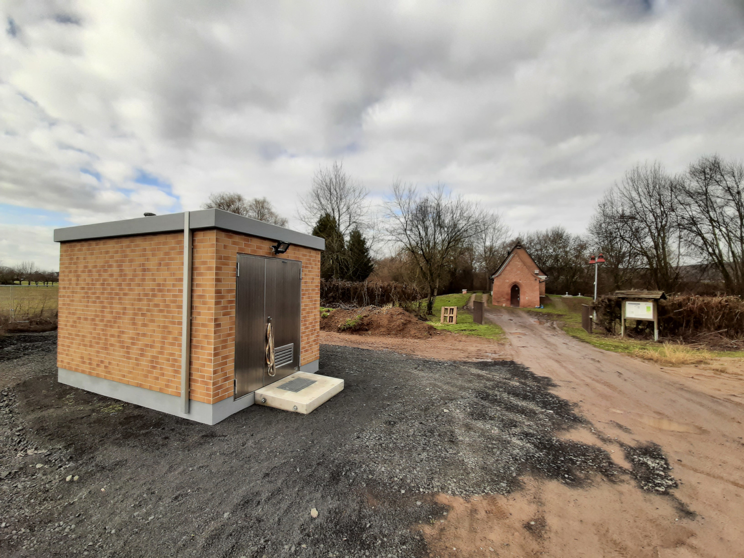 Das neue Brunnenhaus ist auffällig vor der Pumpstation aus dem Jahr 1928 in den Hailerer Auen gelegen. Im Oktober 2021 konnte die Deutsche Bahn den fertigen Ersatzwasserbrunnen an die Stadtwerke Gelnhausen übergeben.