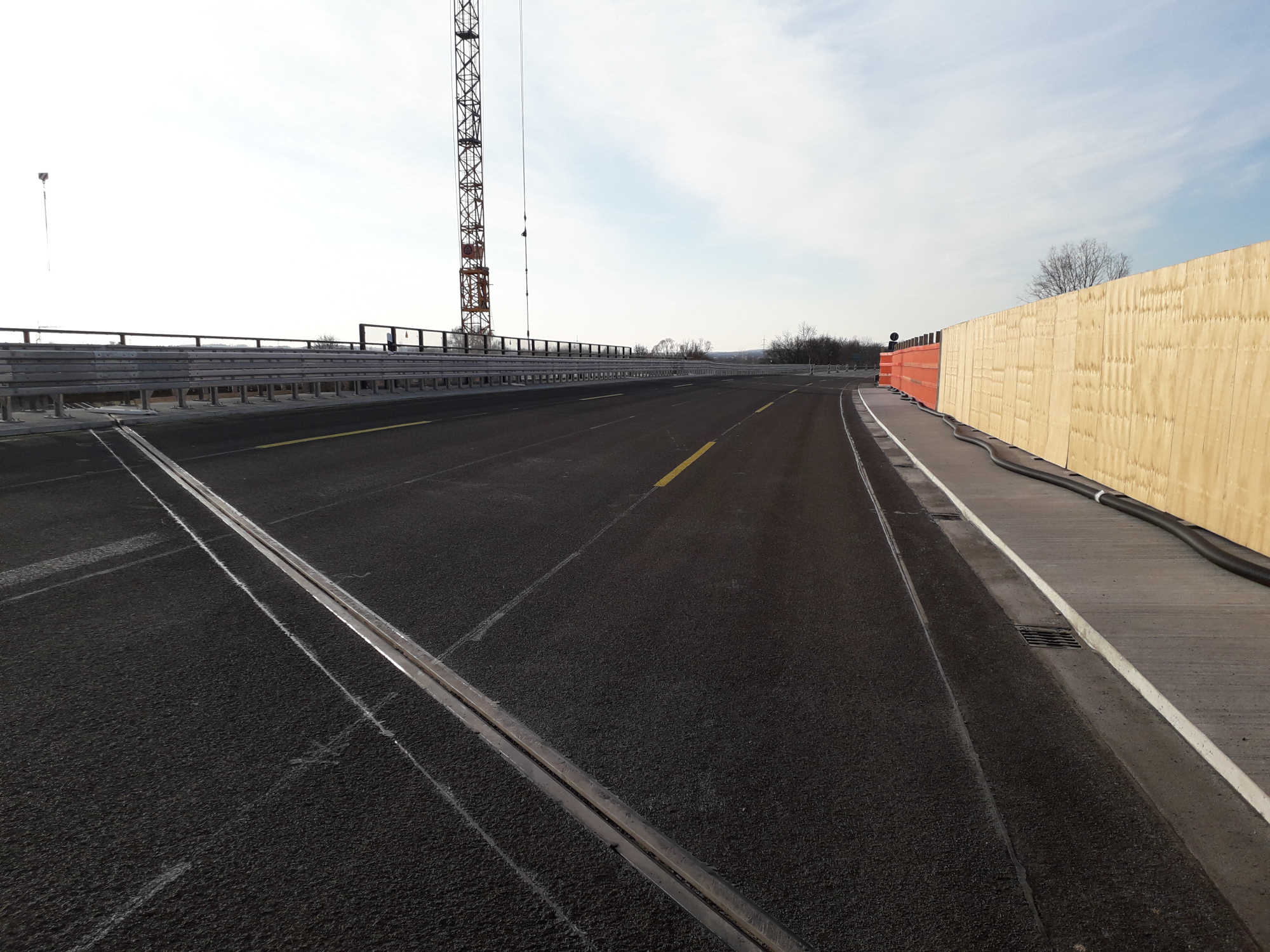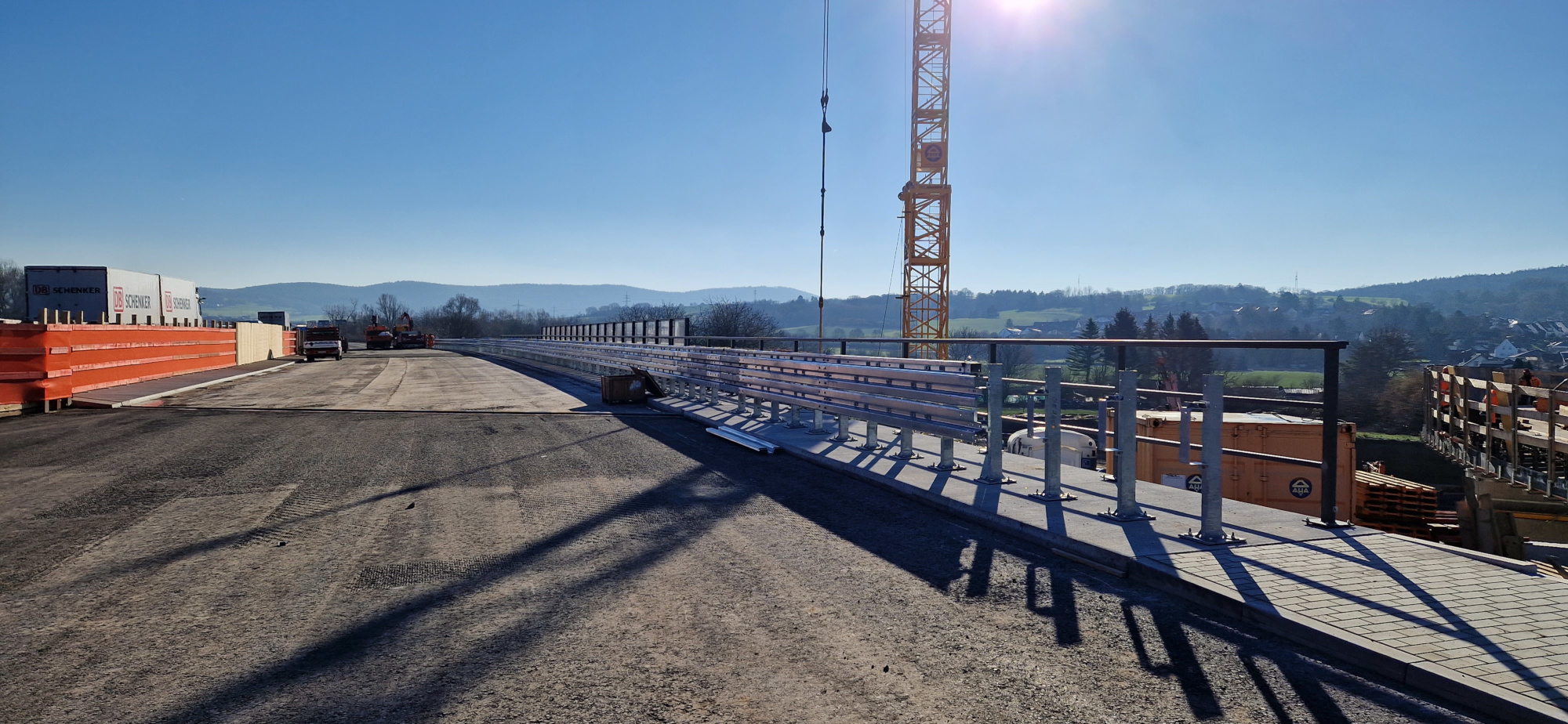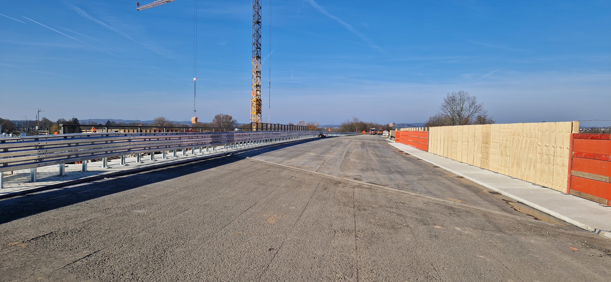Pünktlich zum Monatsbeginn konnte die erste Brückenhälfte auf der Autobahn A66 in Fahrtrichtung Fulda für den Verkehr freigegeben werden. Zuvor wurde die finale Asphaltdecke aufgebracht und Leitplanken, Markierungen und weitere Schutzsysteme installiert. Im nächsten Schritt wird nun die Fahrbahn in Fahrtrichtung Hanau gesperrt und für den Abriss vorbereitet. Der Verkehr wird für die kommenden Monate unter Beibehaltung aller Fahrspuren über die neue Brückenhälfte umgeleitet.