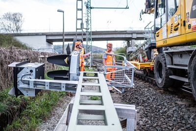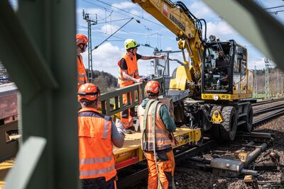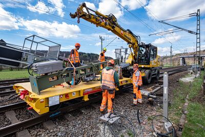 Zwischen Wirtheim und Gelnhausen stellte die DB vier Signalausleger und zwei Signalbrücken für das neue elektronische Stellwerk auf. Die Stahlbauteile wurden mit LKW, Autokran und Zwei-Wege-Baggern angeliefert, zur Montage vorbereitet und aufgebaut. Die Signalstandorte verteilen sich gleichmäßig über die Strecke zwischen Gelnhausen und Wirtheim.